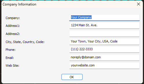 If your company information is incomplete or is not populated, you will see the following in your report preview.